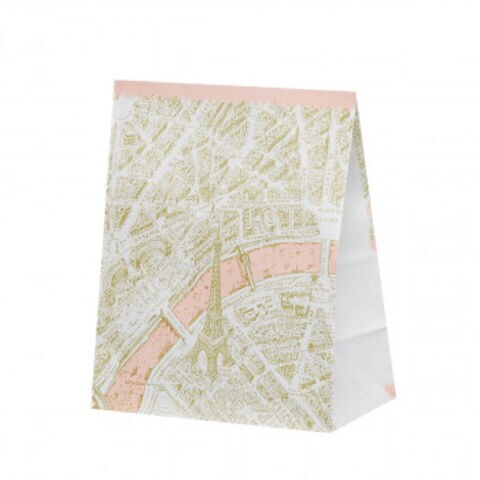 | パリの街並みがプリントされた紙袋です。雑貨の包装などさまざまなシーンで活躍すること間違いなし。 |