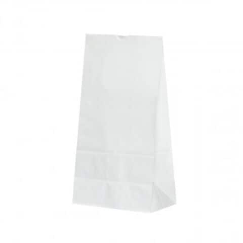 | 白色の角底袋です。耐油性なので、食品の包装に適しています。 |
