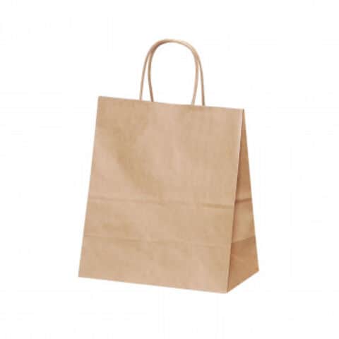 | シンプルなデザインの紙袋です。紐付きなので、ギフトなどの持ち運びに便利です。 |