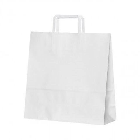 | 白色の紙袋です。ギフトのラッピングなど、幅広いシーンで活躍すること間違いなし。 |