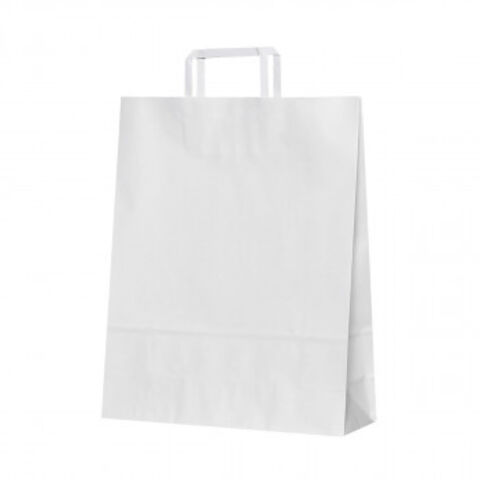 | 白色の紙袋です。ギフトのラッピングなど、幅広いシーンで活躍すること間違いなし。 |