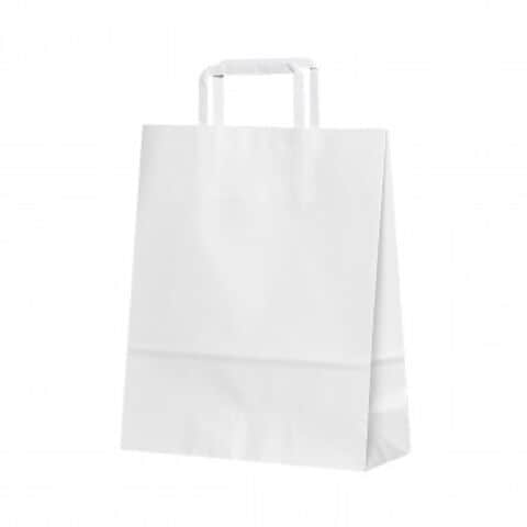 | 白色の紙袋です。ギフトのラッピングなど、幅広いシーンで活躍すること間違いなし。 |