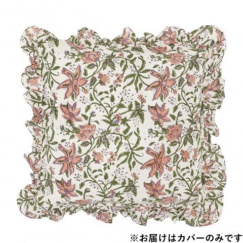 フリルクッションカバー カリーノブロックプリント ライラックピンク 11725883392