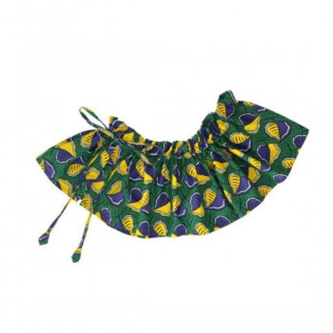 斜め掛けにしたり、キャミソールとしても。5パターンの着方を楽しめるフリルです。鮮やかなアフリカンプリントの柄がコーディネートをぐっと引き立ててくれます。