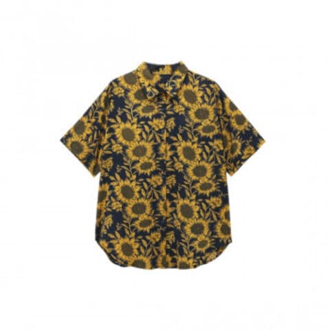 | 夏を思わせるヒマワリ柄を清涼感ある綿素材にのせました。前を開けて羽織りとしても。後ろ身頃の丈が長く、お尻が隠れて自然に体型カバーができちゃいます。 |