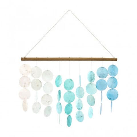 | 風に揺れてシャラシャラと鳴る音と、爽やかなブルーと白のグラデーションが海を感じるタペストリーのようなオーナメント。窓辺に飾れば光を受けてキラキラと輝きます。 ※天然の貝を加工しているため、不揃いであったり少々欠けている場合があります。ご了承ください。 |