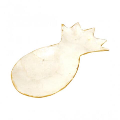 ゴールドのフチとシェルの輝きが美しい、パイナップルモチーフのトレイ。アクセサリートレイや小物入れとして使用しながら、お部屋のインテリアとして空間を華やかに演出します。品質保持のため、表面に樹脂コーティングを施してあります。汚れが付いた場合はぬるま湯でやさしく洗うか、濡らした布巾などでやさしくふき取ってください。