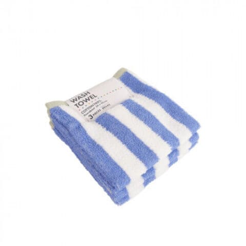 無撚糸リンピオウォッシュタオル3枚組 ブルー SI-14125-3BL