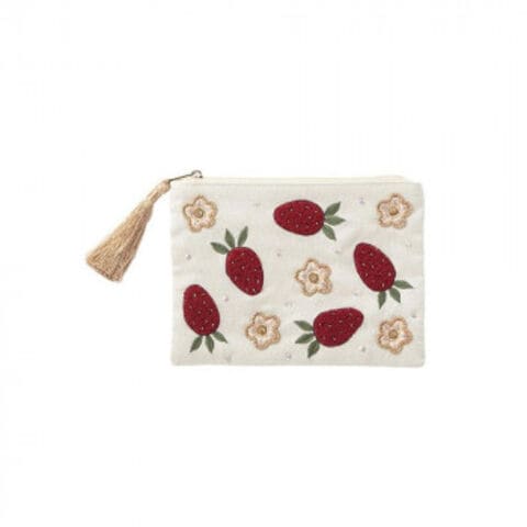 東京かんかん いちご刺繍ポーチS アイボリー M42-2704IV