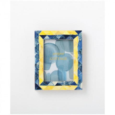| 廃棄されてしまうラクダの骨を使用し、ハンドペイントで色付けしたカラフルなミニフォトフレームです。お部屋に絵画を飾るような気持ちで、そのままでも使えるよう、内紙のデザインもフレームに合わせた抽象画をプリントしています。 ※ハンドメイドで染色しているため色味に個体差がございます。 |