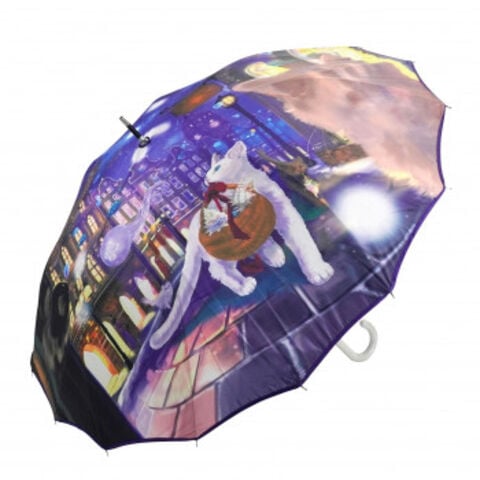 藤田屋 一枚張り婦人長傘 da mon de 60cm クジラ街の猫 DA-2571(NT)