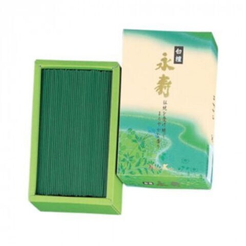 | 遙か永遠の時の流れを想い やすらぎを祈る。こんな願いを込めて名付けられた「永寿」。伝統のお線香の香調、機能を併せ持つ「永寿」は、お線香本来の良さにこだわったお線香です。大いなる大地が生んだ貴重な香木白檀を豊富に用いあたたかく力強いウッディ調の香りに創り上げました。 |