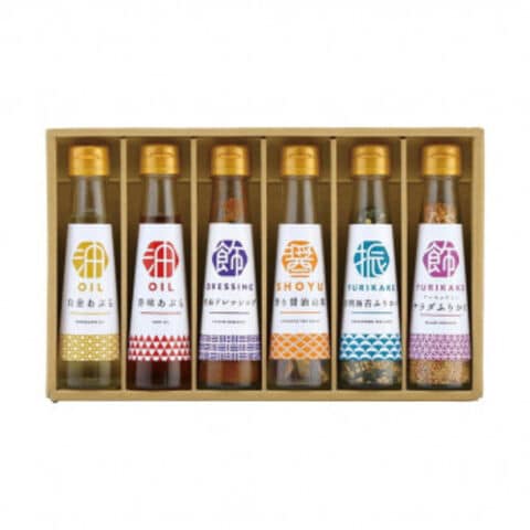 | セット内容 | 白金あぶら90g・香味あぶら90g・胡麻ドレッシング100ml・香り醤油の素4.5g・有明海苔ふりかけ30g・アーモンド入りサラダふりかけ45g各1瓶 |