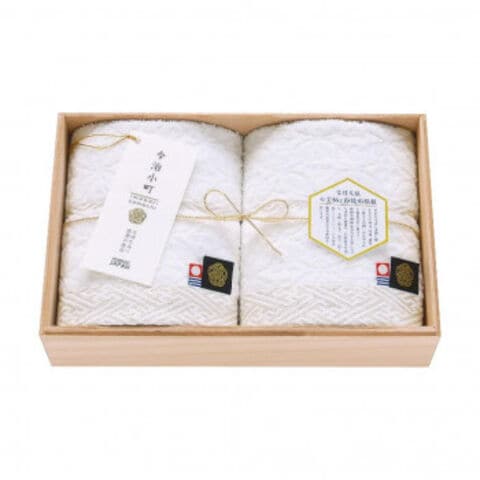 | 平安時代の女流歌人、小野小町が美しかったことから美しい女性の呼び名として使われる小町。今治で評判の美しい娘をイメージし、伝統の織技術を駆使して一つ一つ織り上げていく。そんなシリーズが今治小町です。 お慶びの七宝柄を毛中のジャガードで表現、光沢の糸で紗綾形模様を地づり紋織でヘムを際立たせた高級感あふれる演出のタオルギフト。 |