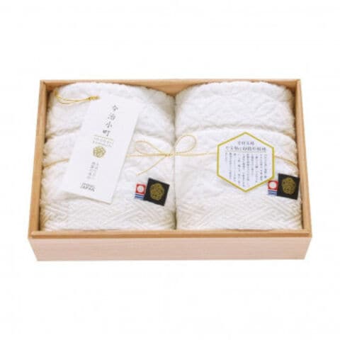 | 平安時代の女流歌人、小野小町が美しかったことから美しい女性の呼び名として使われる小町。今治で評判の美しい娘をイメージし、伝統の織技術を駆使して一つ一つ織り上げていく。そんなシリーズが今治小町です。 お慶びの七宝柄を毛中のジャガードで表現、光沢の糸で紗綾形模様を地づり紋織でヘムを際立たせた高級感あふれる演出のタオルギフト。 |