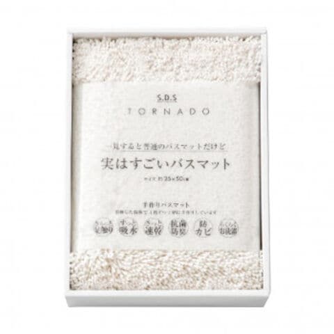 | 一見すると普通のバスマットだけど実はすごいバスマット熟練した技術で1枚ずつ丁寧に手作りしています。「すごい」の秘密はみためでほとんどわからない2種類の糸。吸水速乾のポリエステル糸と抗菌防臭のアクリル糸2本の糸をツイストして1本に組み合わせることでへたりに強い弾力性のあるコシが生み出され、さらっとした足触りを実現しました。 さらにうれしい防カビの機能をプラス。お洗濯後も乾きが早く、気軽に洗えます。 |