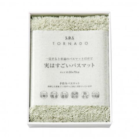 一見すると普通のバスマットだけど実はすごいバスマット熟練した技術で1枚ずつ丁寧に手作りしています。「すごい」の秘密はみためでほとんどわからない2種類の糸。吸水速乾のポリエステル糸と抗菌防臭のアクリル糸2本の糸をツイストして1本に組み合わせることでへたりに強い弾力性のあるコシが生み出され、さらっとした足触りを実現しました。