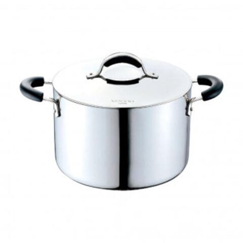 | 熱伝導の良いアルミニウム合金と保温性に優れたステンレス鋼をサンドイッチした構造で、それぞれのメリットを活かした仕様です。ごく弱火で調理ができ、ガス代、電気代の節約になります。鍋の内側で発生した蒸気が水滴となり、鍋とフタの隙間を埋めて密封状態になります。そのため、素材の旨味や栄養素を鍋の中に閉じ込めて、料理が美味しくヘルシーに仕上がります。内側に見やすい目盛り付き。 |