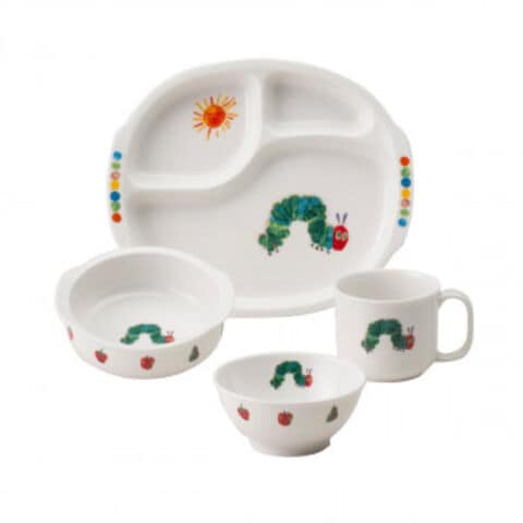 | 使いやすいアイテムを集めたセット内容もポイントです。ご飯茶碗は手に持つので軽く、持ちやすい形にしています。13cm小鉢は、スープやグラタンなど色んなメニューに活用できるアイテム。深さがしっかりあって、スプーンなどですくいやすい形です。マグは子供がしっかり握れるハンドルになっています。 エリック・カールの名作「はらぺこあおむし」がモチーフ。出産祝いのギフトにもおすすめの子供食器セット。「はらぺこあおむし」のようにもりもり食べて、元気に大きく育って欲しいという願いが込もっています。 |