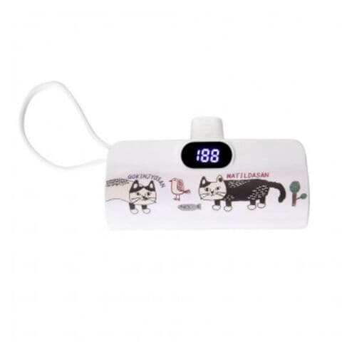 クスグル コンパクトモバイルバッテリー 5000mAh B型ネコまるけ柄 ホワイト 25-8099