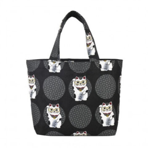 クスグルジャパン コブラン織りバッグ ミニバッグ めがね猫招き柄 チャコール 25-8166