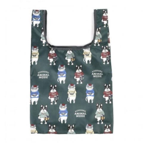 クスグルジャパン プリントエコバッグ アニマルモード柄 モスグリーン 25-8178