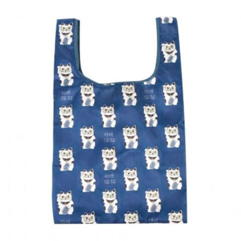 クスグルジャパン プリントエコバッグ 猫招き柄 ブルー 25-8179