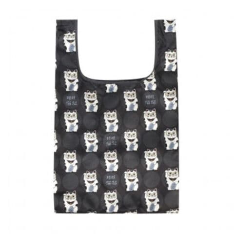 クスグルジャパン プリントエコバッグ 猫招き柄 クロ 25-8179