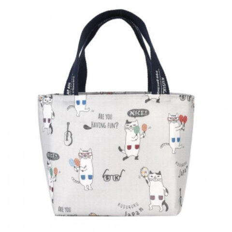 クスグルジャパン 保冷・保温バッグ 保冷・保温ランチバッグ ネコまるけ柄 グレー 25-8181