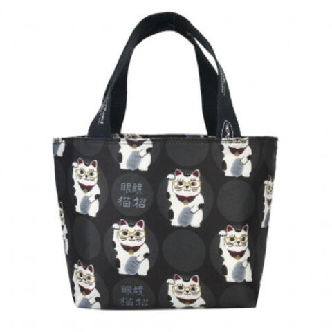 クスグルジャパン 保冷・保温バッグ 保冷・保温ランチバッグ 猫招き柄 クロ 25-8184