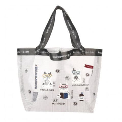 クスグルジャパン クリアメッシュバック トートバッグMサイズ ネコまるけ柄 25-8200