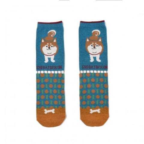 クスグルジャパン パーラーすずらん堂 ルーズソックス ジャガード靴下 柴尻君柄 サックス 25-8223
