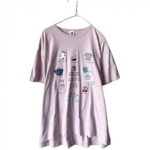 クスグルジャパン 天竺ニット ラフサイズTシャツ クスグルハピネス柄 ピンク 24-7133