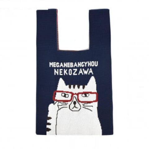 クスグルジャパン クスグル ニット・トートバッグ ネコザワさん柄 紺 24-7079