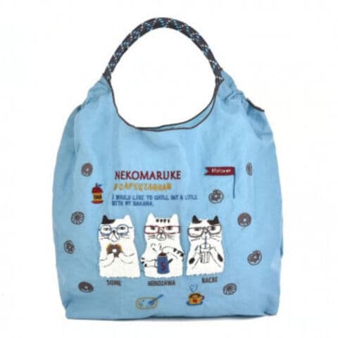 クスグルジャパン 撥水加工 刺繍ワッシャーバッグ Mサイズ ネコまるけ柄 ブルー 24-7149