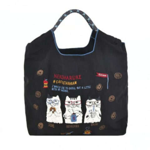 クスグルジャパン 撥水加工 刺繍ワッシャーバッグ Mサイズ ネコまるけ柄 クロ 24-7149