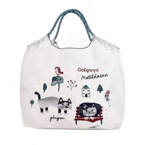 クスグルジャパン 撥水加工 刺繍ワッシャーバッグ Lサイズ マチルダさん柄 オフホワイト 24-7154