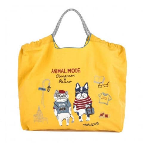 クスグルジャパン 撥水加工 刺繍ワッシャーバッグ Lサイズ アニマルモード柄 カラシ 24-7155