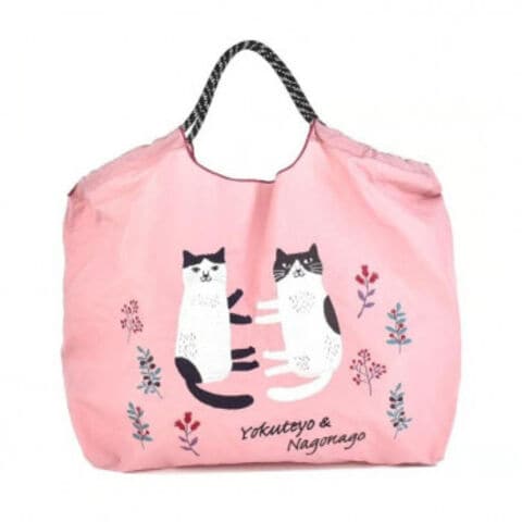 クスグルジャパン 撥水加工 刺繍ワッシャーバッグ Lサイズ なごなごさん柄 ピンク 24-7156