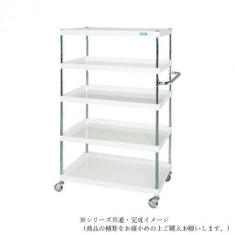 | 仕様 | 外寸:W900×D600×H1500mm 均等耐荷重:150kg 本体色:パールホワイト 質量:41kg キャスター:75φナイロンウレタン車 段数:5 組立式 |