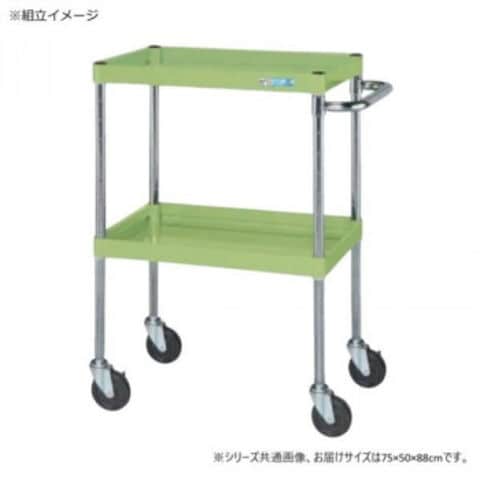 | 仕様 | 外寸:W750×D500×H880mm 均等耐荷重:100kg 本体色:グリーン 質量:16kg キャスター:100φゴム車 段数:2 組立式 |