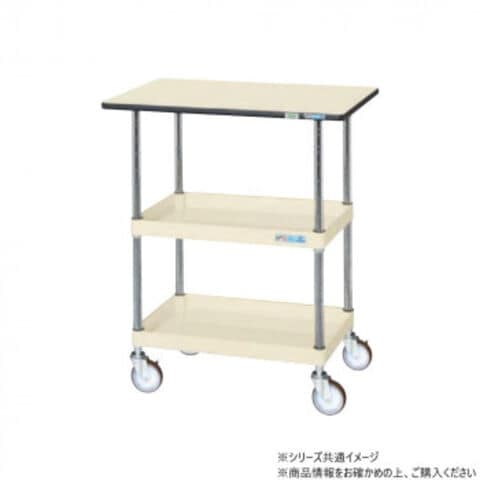 | 仕様 | 外寸:W750×D500×H760mm 棚板サイズ:W600×D400mm 均等耐荷重:150kg 本体色:アイボリー 質量:16kg キャスター:100φゴム車 段数:2+天板付 天板種類:ポリエステル天板 天板カラー:アイボリー 天板厚:21mm 支柱:クロムメッキ25.4φ、棚板調整ピッチ50mm 改正RoHS10物質対応 組立式 |