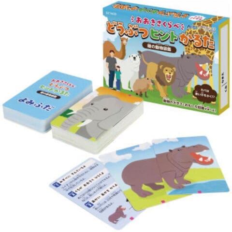 | 動物の雑学と大きさを学ぶことができるかるたです。梅花女子大学こども教育学科とアーテックとの産学連携によるコラボ商品です。登場する動物の種類は全41種類で、3種類のゲームができます。 |