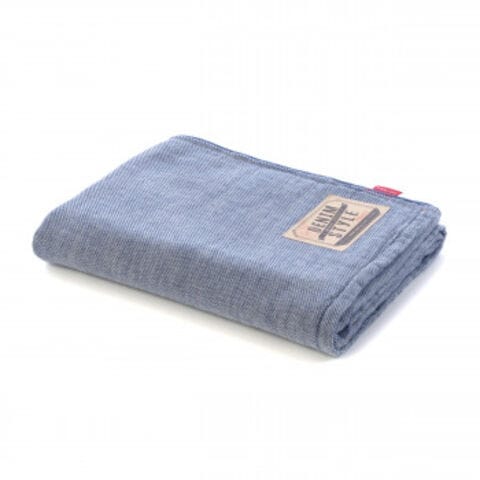 表はウォッシュアウト感のあるデニム風のガーゼ、裏は吸水性とボリューム感のあるパイルの片面ガーゼタオルです。肌触りは今治タオルらしい、柔らかで手に馴染む風合いに仕上げました。端部にはデニムの赤耳をイメージしたステッチ感を施し、赤タブにより高級感のあるデニムデザインに仕上げました。