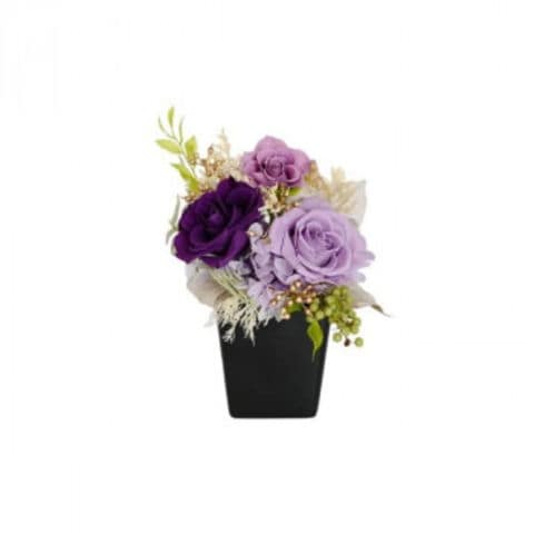 | 深いブラックの器に華やかなカラーのアレンジメントです。 |