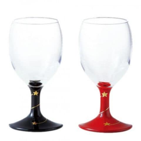 | 脚部を漆塗でシンプルに仕上げたシェリーグラスに、流れ星をイメージした星を描きました。美味しく飲みながら漆の美しさもお楽しみください。 |