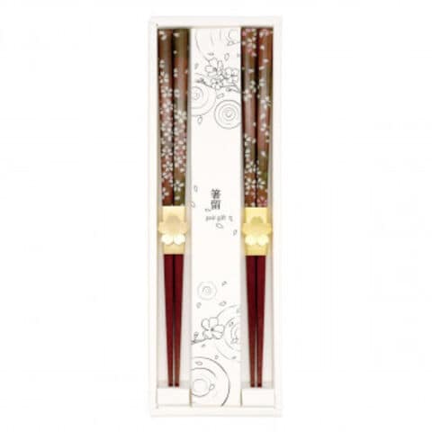 | 箸留付きのシックなデザインの中に高級感のある桜が散りばめられたペアお箸セットです。ご自宅用としても、贈り物としても活躍します。海外の方へのお土産にもどうぞ。 |
