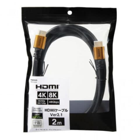 | 仕様 | DynamicHDR・拡張オーディオリターンチャンネル(eARC)・可変リフレッシュレート(VRR)・HDMI イーサネットチャンネル(HEC)・HDCP Ver1.4/2.3:対応 3重シールド構造 金メッキ端子 無鉛ハンダ・OFC電材:使用 コネクタ形状:HDMI標準(タイプA)オス-HDMI標準(タイプA)オス ?HDMI規格:ULTRA HIGH SPEED with Ethernet ?伝送速度:48Gbps ?解像度:8K/60p・4K/120p |