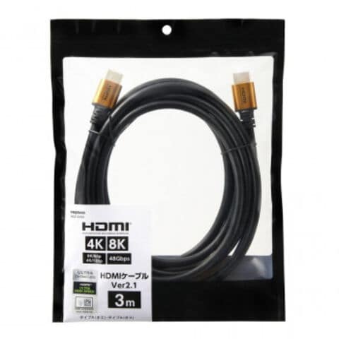 | 仕様 | DynamicHDR・拡張オーディオリターンチャンネル(eARC)・可変リフレッシュレート(VRR)・HDMI イーサネットチャンネル(HEC)・HDCP Ver1.4/2.3:対応 3重シールド構造 金メッキ端子 無鉛ハンダ・OFC電材:使用 コネクタ形状:HDMI標準(タイプA)オス-HDMI標準(タイプA)オス ?HDMI規格:ULTRA HIGH SPEED with Ethernet ?伝送速度:48Gbps ?解像度:8K/60p・4K/120p |