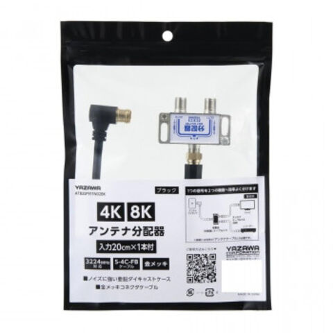 YAZAWA(ヤザワ) アンテナ分配器IN20cm×1本ケーブル付黒 ATB2SP911N02BK